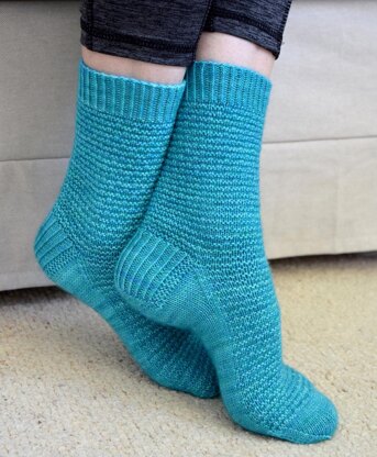 The socks are worked in the round from the cuff-down.