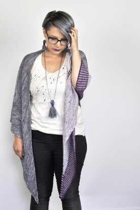 Das Tuch wird seitwärts in Kraus-Rechts mit einem I-Cord-Rand gestrickt, dabei werden drei Farben ineinander geblendet. Dreieckige Patent-Elemente wachsen aus der Mittellinie auf wechselnden Seiten. Abgeschlossen wird das Tuch mit einem Farbtupfer, dem kontrastreichen Patent-Rand.