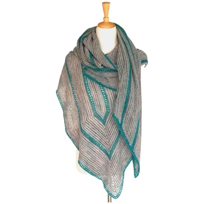Subtle layers of pinstripes, like the patina of aged stone, play off the edging and narrow bands of bright colour. After the provisional cast on, the interplay of eyelet and garter stitch rows keeping the knitting interesting without adding difficulty. With so many different ways to wrap it, you can mold Iolite into whatever the occasion calls for.