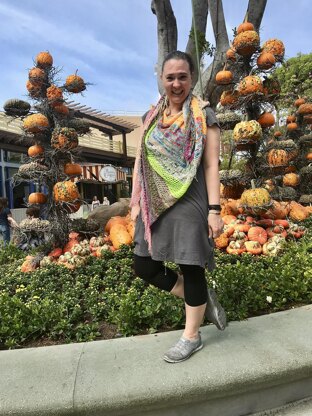When Catie asked me if I would be interested in creating a pattern for her Halloween Advent Calendar, I of course said YES! Fall colors are my absolute favorite and I can be caught singing “This is Halloween” over the whole year, not just fall. I had so much fun putting together this fun asymmetrical shawl to help you greet Halloween or to just inspire you to enjoy the fall season. You knit with one mini-skein at a time, and be sure to hold on to the leftovers, they create a fun fringe for the bind off edge.