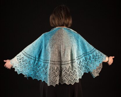 Another "radial shawl" combining simple short row shaping and a wide lace pattern to create a semicircular shawl.