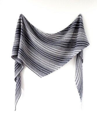 iSea is a squishy garter shawl with stripes and eyelets. It's worked flat from the right tip to the left edge with a curved top edge.