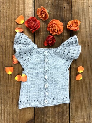 Istanaz has a vintage feel to it, and will become an heirloom piece to be handed down from baby to baby. Top down construction, ruffle sleeves and looks great with the buttons on the back or front. This can be work open as a cardigan, or buttoned up as a top. This is designed with positive ease, so there will be room to grow.