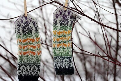 The pattern is in pictorial form, with full color charts for palms and thumbs; there is no written instructions.