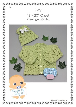 Ivy is a knitting pattern to make a pretty baby cardigan and pineapple style hat. It is made using DK yarn and 4mm needles.