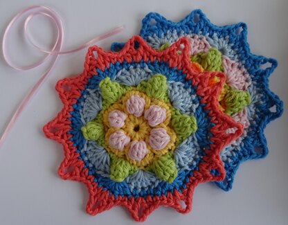 Mandalas can be made in any weight of yarn provided you use a suitable hook size, and they use only a small quantity of yarn so are great little stash busters.