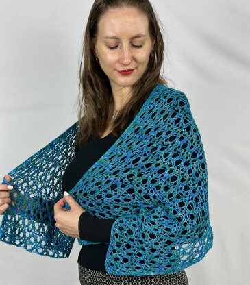 This pattern is an easy lace pattern that creates a beautiful openwork shawl. The final measurements for the finished shawl are 15” / 38cm wide x 53” / 135cm long. Pattern includes instructions for adapting the pattern for a different size.