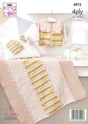 Jacket, Hat, Shoes and Blanket in King Cole Big Value Baby 4Ply - 4975 - Downloadable PDF