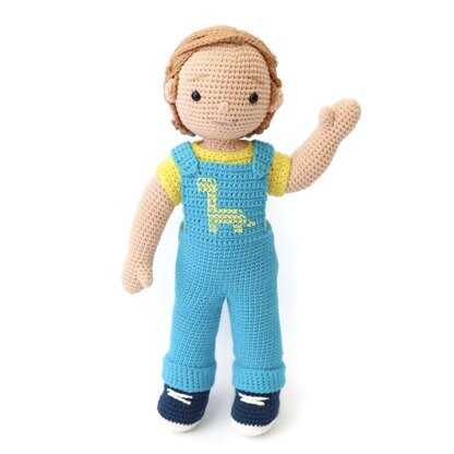 Say hello to James, your new best friend who loves to cuddle. He loves dinosaurs and knows all the names, maybe he can teach you too! James is an amigurumi doll wearing dungarees, t-shirt and shoes (all clothing is removable).