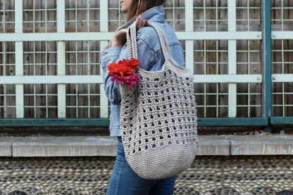 Tote all of your summer essentials in style with the Janey Basket Bag. The simple construction works up quickly and features a sturdy base and woven-style sides. The roomy size is perfect for your beach towel and book or groceries from the market for the night’s feast.
