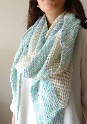 The Janis Wrap is a very easy knit, worked flat in a combination of garter stripes and mesh stitch.