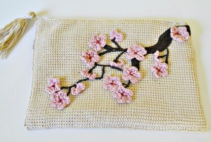 I was invited from the group plexi-class in ravelry to participate at a creative journey around the world, with the wonderful idea of Kostas, the group moderator, creating something inspired by Asia! Traveling with my fantasy to Asia, I admired the amazing cherry blossom trees of Japan and was inspired to create a crochet clutch! This was the first time I tried Tunisian crochet for the body of the clutch and I embellished the front side with a branch full of flowers and buds, while for the back side I choose stripes and two flowers for decoration. The clutch has cotton lining and closes with a zipper which is embellished with a tassel.