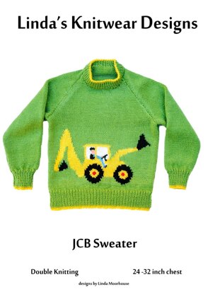 Child's sweater with JCB / digger motif - sizes [24 - 26 - 28 - 30 - 32] inch chest Round neck with raglan sleeves Required: 3.25 mm & 4 mm needles; double knitting yarn [200g-300g-300g-300g-400g] Tension: 22 stitches x 30 rows = 4 inches using 4mm needles and stocking stitch Motif size: 64 stitches x 47 rows (11.5 inches long x 6.25 inches high) Excavator, backhoe, trackhoe, construction vehicle