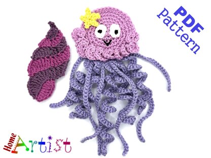 The pattern provides instructions to make a cute crochet applique that can be used in inumerable ways...decorate and personalize your favorite objects like hats, t-shirts, bags, school knap-sacks and lots of other stuff you can think of. Jellyfish: 3 ½ inches across by 7 inches tall Shell 2 ½ inches across by 4 inches tall using 2.5 mm crochet hook The size can be varied by using thinner or thicker yarn and types of hook. Colors can be changed according to your personal preference. The pattern is designed for worsted weight yarn and uses American English crochet terms. This crochet pattern is available for Instant Download. Once your payment is received, you will get an email with the download link and details of your order. In case of problems feel free to contact me anytime.