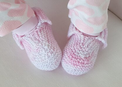 These 4ply garter stitch baby shoes or slippers have a folded down top. This style of shoe is also available in 8ply.