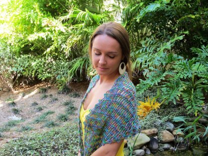 Jess's Easy Shawlette is a light-weight accessory. Start at the point of the triangle with 8 chain stitches, and increase each row. You can increase the length and width of the shawlette by adding more rows. If you do, however, you'll need additional yarn. After two set-up rows, the rest of the shawlette is a single row repeat. The edging is essentially the same pattern as the body of the shawlette.