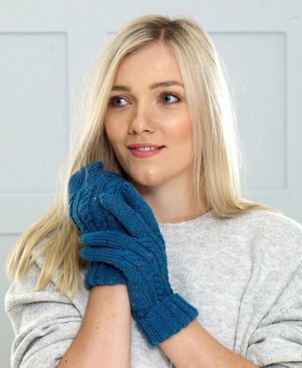 JOAN is a cosy pair of cabled gloves, knitted on two needles. The deep rib cuffs can either be worn folded back, to keep your wrists super warm, or folded down, to create a slightly longer cuff. The simple cables are mirrored on each glove and the fingers and palm are knitted in simple stocking stitch.