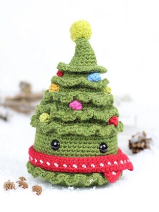 Jolly, the Christmas Tree is 8 inches (20 cm) tall, using worsted weight yarn. Written in American English crochet terms.