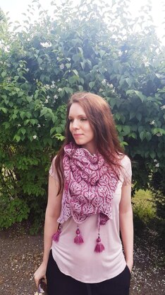 It was my mother who taught me how to knit when I was a child. I made a scarf or two, but I didn’t really get into it until after I lost her as a teenager. It became a way to process the grief and to feel close to her. Her name was Josephine and this shawl is dedicated to her. She had a very demanding job as a psychiatrist, so in her spare time she wanted to surround herself with nice things that made her happy and peaceful. She loved pink, beads, tassels and most of all she loved her beautiful garden. I wanted to do something special for the anniversary of her passing this year so I made this shawl. I know she would have loved it, and I hope other people will too.