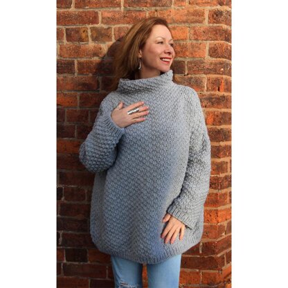 The pattern comes in sizes S/M/L. The Jumbo Jumper is for intermediate knitters. The front and back are knitted alike making it an easy shape to adapt to other yarns.