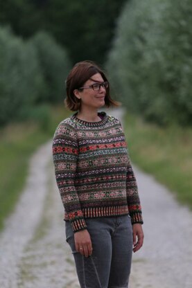 I designed this classic Fair-Isle sweater for me, colour inspired by the beautiful hydrangeas in my garden. This “jumper” received great recognition on my first trip to the Edinburgh Yarn Festival in 2016. The interest has motivated me to knit another model and write this pattern.