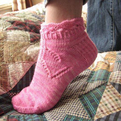 June Apple Inspiration I tend to approach my knitting with much the same attitude as I do music; less can be more and space, or silence, speaks loudly. The inspiration for these socks came from a desire to remove “extra” lines (i.e. the angles of traditional gusset decreases) and focus on rolling function and style into one whole. Instead of having more going on with the gusset decreases along the side of the foot and the main pattern on the instep, why not combine the two elements? For June Apple, the decreases occur in the standard sets of two on every alternating round. However, I moved them away from the heel to be used instead as a decorative element on top of the foot. In doing this you can also see that as long as stitches are removed at a steady rate they can be taken from anywhere in the round. It is possible to utilize this method of decreasing with any stitch pattern where two stitches of every other round