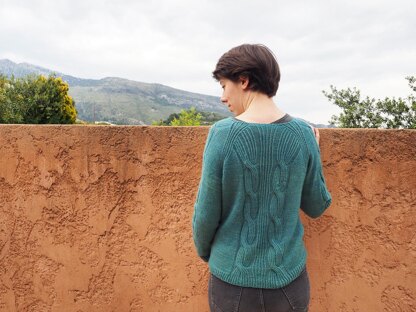 This raglan pullover is inspired by that time, called Jusant in French, when the tide lowers, leaving drawings and an interesting texture in the sand. Jusant is worked in the round, bottom up. Body and sleeves are worked separately in the round and rejoined to work the yoke with raglan decreases. The stitch pattern is made of (k1tbl, p1) ribbing crossed in a large 18 sts cable, creating a beautiful texture. The cable is worked twice in the middle of the front and back, and once on each sleeve. The raglan decreases are worked around a few elegant stitches of (k1tbl, p1) ribbing. The pattern is written for a pullover worked straight, with no waist or bust shaping, but it also includes notes to make your own modifications depending on your body and preferences (waist shaping, bust darts, wider neckline, longer or shorter body and sleeves).