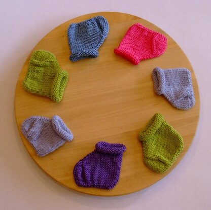 I have recommended size 4mm needles, this will give you a bootie of about 8-9cms in length, depending on your choice of yarn. Tension is not really important in this knit. If you wish to have a smaller or bigger bootie, change the size of your needles or knit with a finer or thicker dk yarn.