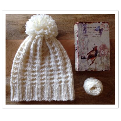 Just Lucky hat is worked in the round from the bottom up. It is an easy, quick knit, with lots of texture and uses just one skein of the very soft Cascade Yarns 128 Superwash ,100% merino wool. The size can be adjusted easily. The Just Lucky hat would make a great Christmas gift.