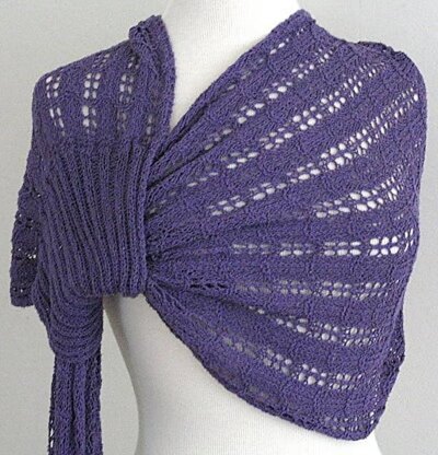 This beautiful lace wrap has a keyhole at one end that helps with dressing and wearing the wrap.