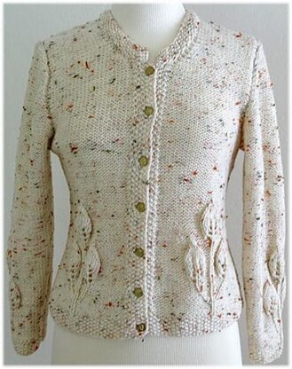 This cardigan is very close to my heart as it was inspired by the struggles of the Iranian people for having their votes counted and gaining their freedom. That is why I call this beautiful cardigan "Let Freedom Flourish". The pattern for this fitted cardigan is an easy leaf pattern that reminds me of a seedling growing. Freedom is like that small tree that needs a lot of care and nourishment. The cardigan has long set-in sleeves that have the same pattern on the cuffs. It has a crew neckline perfect for cold winter months.