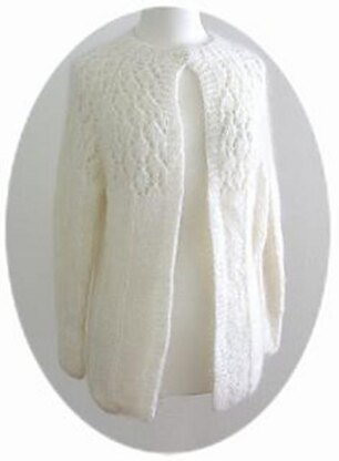 Elegant Mohair cardigan is a beautiful cardigan worked in an easy rib pattern to the underarm. The raglan yoke follows an easy lace pattern creating an impressive look. The sleeves follow the same pattern as the body. A single large button is used for closure. This design is part of the Winter 2011 issue of lace 'n More magazine.