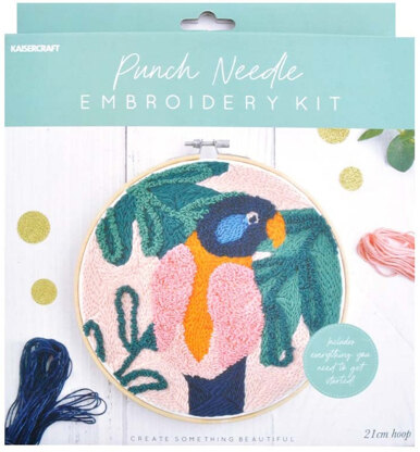 Kaisercraft Punch Needle Kit 8" Round-Lorikeet. A traditional craft project with a modern edge, create a beautiful texture design guided by easy-to-do instructions. Includes fabric, yarn, tool, & hoop.