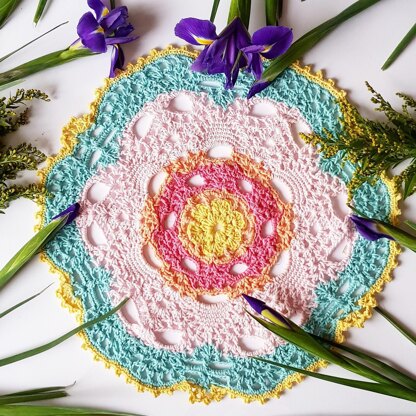 Kaleidoscope Doily is a delicate piece, with floral vibe. It's a challenging project, but to make it a bit easier, I included pictures of each round as a reference.