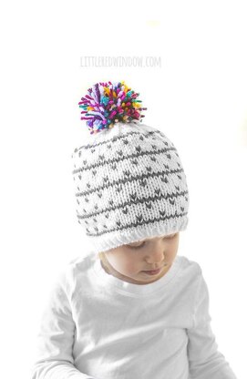The Kaleidoscope Hat knitting pattern makes a cute winter baby hat with a fun multicolored pom pom on top for your baby or toddler, it's sure to bring a little joy to your winter! This fun hat is knit in the round and includes instructions for making a multicolored pom pom using several different colors of yarn of your choice!