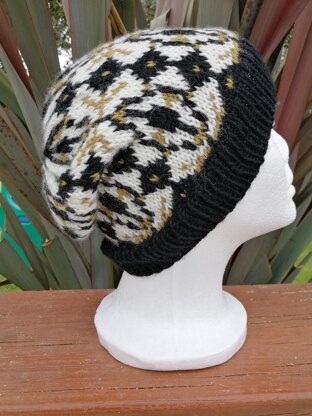 Kaleidoscope hat is knit in the round, using a charted, stranded colourwork pattern. It’s knit in DK yarn, so is lovely and thick and cozy for those cold winter days. Skill Level: Intermediate Sizes: Adult, Adult Large Recommended Yarn: Cascade 220 DK superwash in 3 contrasting colours, with one being black. I used Colours Black 815, Aran 817, Straw 870. Needle Size: 3.5mm Circulars and 4mm Circulars. This hat is knit in the round using a magic loop method or you can knit on dpns if you prefer. Gauge: 10 rows 12 stitches = 5 cm in Stocking stitch Notions: Darning needle for weaving in ends Scissors Tape measure Stitch markers Pom Pom if desired