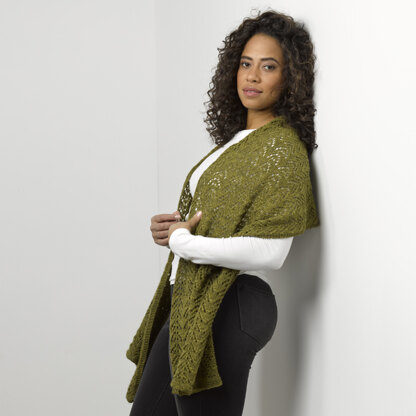 Kalispell Shawl is a rectangular wrap knit in a simple lace pattern. Worked in DK weight Alden, this accessory is just the thing for extra warmth on those chilly days. Note: Lace pattern is both written and charted.