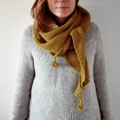 Kari shawl is the epitome of meditative knitting. No need for counting stitches or rows, just simple increases at the beginning of each row and after that it’s just smooth sailing with garter stitch. This is the perfect project when you need to concentrate on other things while knitting, like a movie or conversing with your friend over a cup of coffee. Or wintry road trips when the daylight is scarce. The garter stitch creates a squishy warm fabric and the long shape of the shawl makes it ideal for wrapping around your neck and shoulders. You can add tassels or pompoms to the corners of the shawl if you like.