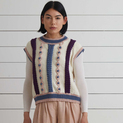 A tank top is such a versatile garment, and this cabled beauty is enhanced by stunning embroidery over the cabling in contrast colours! Match the rib and neckline to the contrast embroidery for maximum effect! This is a great project for anyone new to cabling, and is worked up in Debbie Bliss Cashmerino Aran, which is so soft, warm and cosy to wear.