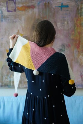 The simple triangles of the Karnevaali Scarf are created using the intarsia technique. The scarf is knitted in garter stitch and its size can be easily adjusted according to the amount of yarn available. This instruction is also suitable for leftover yarns.