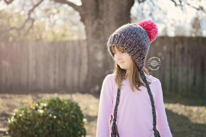 The Chunky Kat Bonnet is a chunky and cozy knit with cute little tassels!