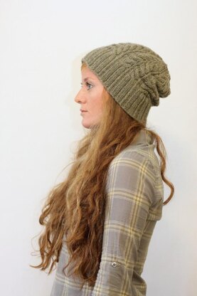 Kathleen features deep ribbing and large mirrored cables. Knit using Cascade 220, this worsted weight project knits up quickly and the stitch pattern is fun and rewarding to work. With it's generous length this hat can be worn slouchy or with a folded brim depending on your preference.
