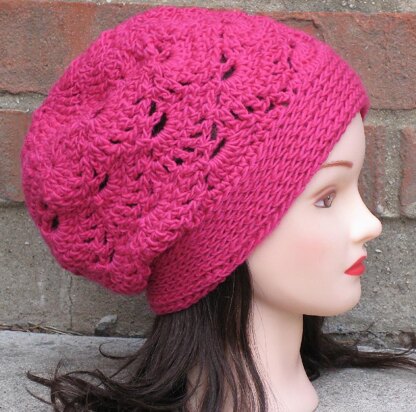 This pattern is for a gorgeous, striking slouchy beanie combining a pretty, graceful fan pattern with a cool surface braid stitch brim. This hat is both bold and beautiful, and is sure to add style and flair to any wardrobe! The pattern contains detailed step-by-step instructions and helpful, clear photos.