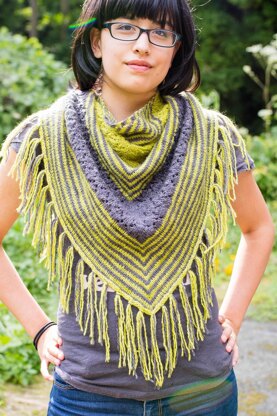 Keep Austin Warm shawl, a play on the “Keep Austin Weird” slogan, draws inspiration from the city itself for the design. The triangular shape and fringe evokes the cowboy bandana, the lace mimics the thistles and wild plant life native to the area, and the stripe stockinette section drawing from modern fashion. Knit up in Worsted weight yarn, the end result is a large and swooping shawl, perfect for the adventurer in all of us.