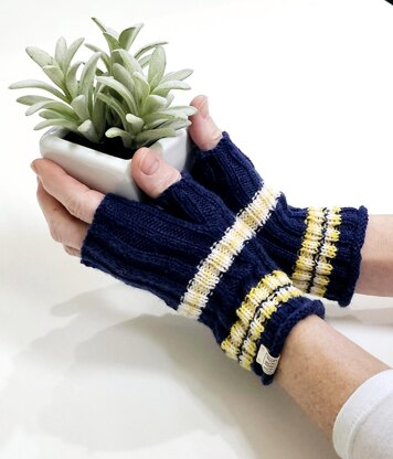 Pattern contains 2 sizes, is worked in-the-round, bottom up, with optional rolled cuff that fits under a sleeve. These super stretchy gloves fit most teen or adult sized hands.