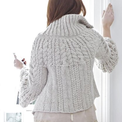 "The perfect little cover-up. Worked in a super soft chunky yarn, with an intricate cabled yoke and detailed sleeve. This is not for the faint-hearted but is one that will show off your knitting talents." - Jo Storie