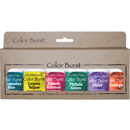 Ken Oliver-Color Burst Powder. These concentrated microfine watercolor powders let you create beautiful watercolor techniques like never before! This package contains six 6g bottles of watercolor powder in assorted colors. Non-toxic. Acid free. Comes in a variety of colors. Each sold separately. Made in USA.
