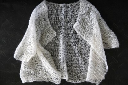 This shrug is knitted from the top down in one piece, with the sleeves separated and then completed after the body is worked.