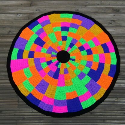 Challenge your mind! The rings represent the dials of a combination lock. Rotating some of the rings would create a large X-shape in one colour across the afghan.