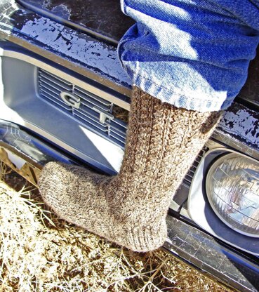 Keyll Socks feature a cushy ribbed cuff & heel flap, with a simple textured leg pattern - both appealing to most men. Women will enjoy these too for 'every day' socks.